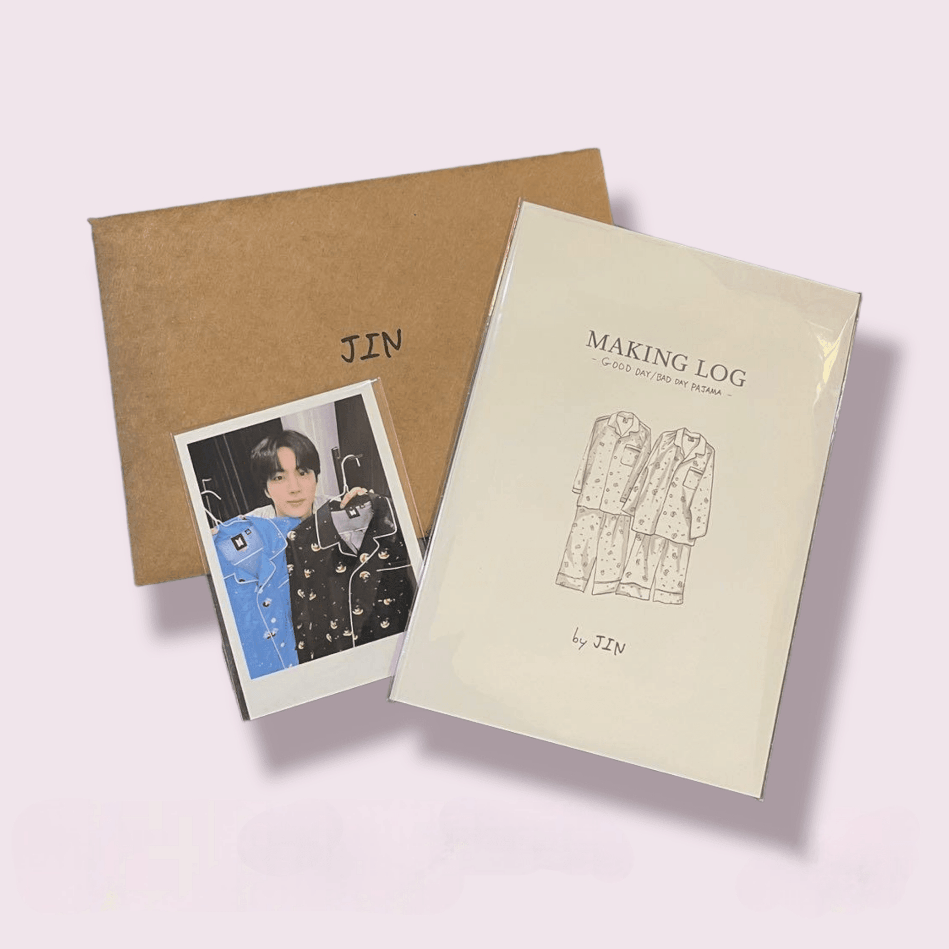 Jin good day/bad day pajamas: in cotton and polyester, with a predominance of cotton, it is soft and comfortable to wear and is available in sizes M to XL, in a unisex model. Merch replica product of great quality and finish. Comes with an envelope with a making log leaflet and Jin's photocard. Use and/or gift another Army!💜